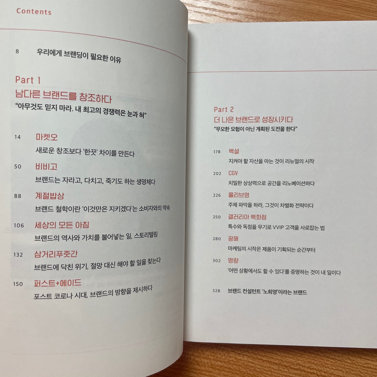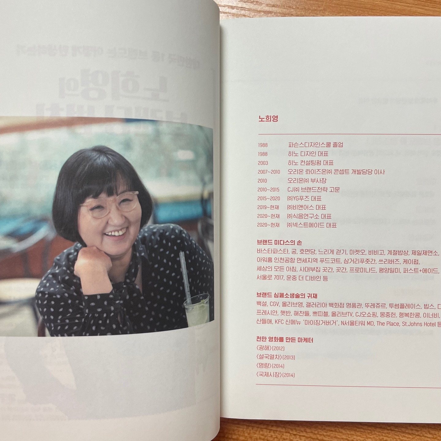 저자이신 노희영님은 한국사람일면 모를 수가 없는 수많은 제품들을 브랜딩하신 분이다. 비비고 만두, CGV 등등 우리 삶과 자연스럽게 함께 하고 있는 많은 제품들이 어떤 과정을 거쳐 곁에 있는지 궁금하시다면 읽어보시길 추천한다!!