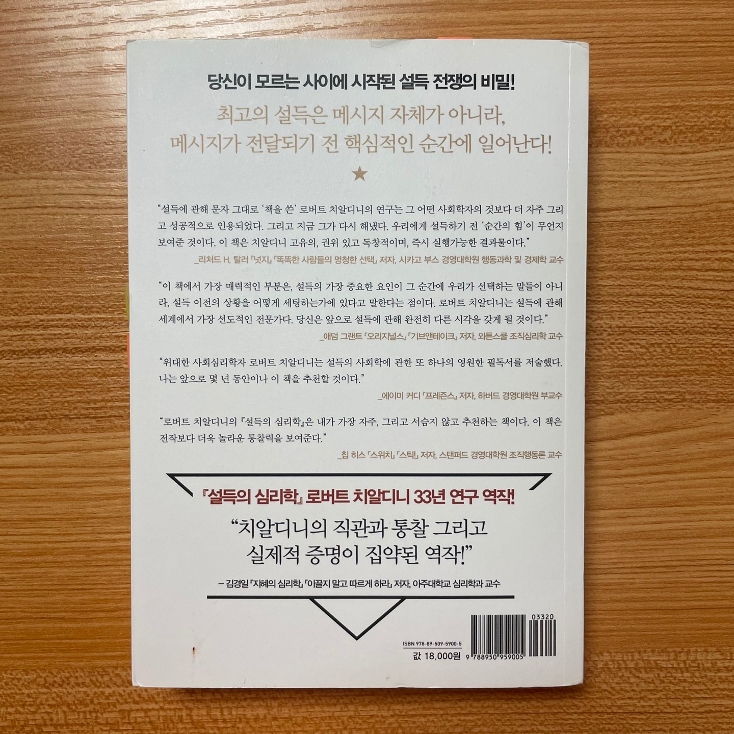 이 책은 설득에 관해 좋은 비법들을 얻을 수 있는 책이다. 이 책을 통해 생각해보지 못했던 다양한 설득법들을 배울 수 있을 것이다.