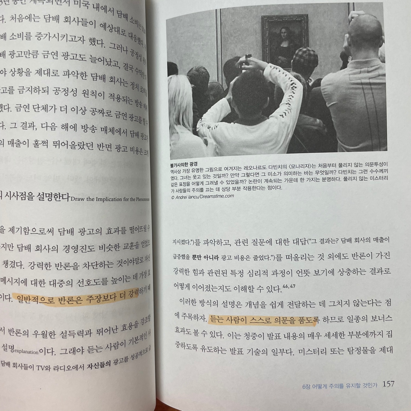 - P152. 미스터리 이야기로 시작하라. 이는 듣는 사람의 주의를 유도하며 고정시키는 효과가 있다.