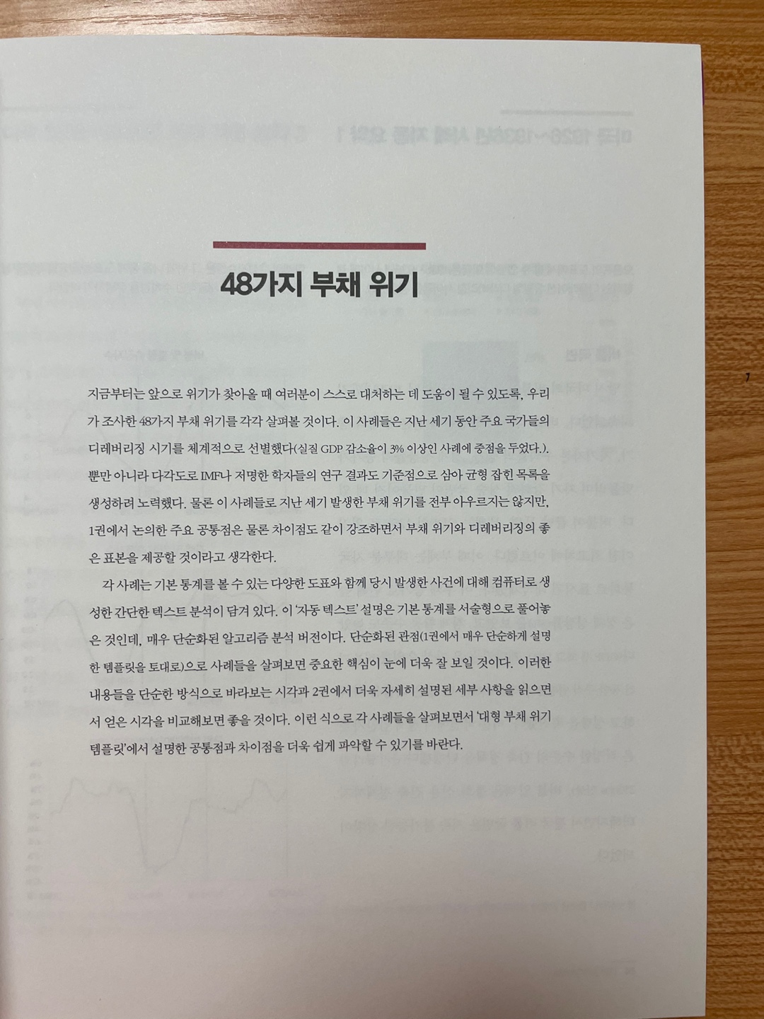 책은 파트 1,2,3으로 총 3권으로 구성되어있다. 파트 1은 위의 사진 처럼 '대형 금융 위기를 이해하는 기본 템플릿'이다.