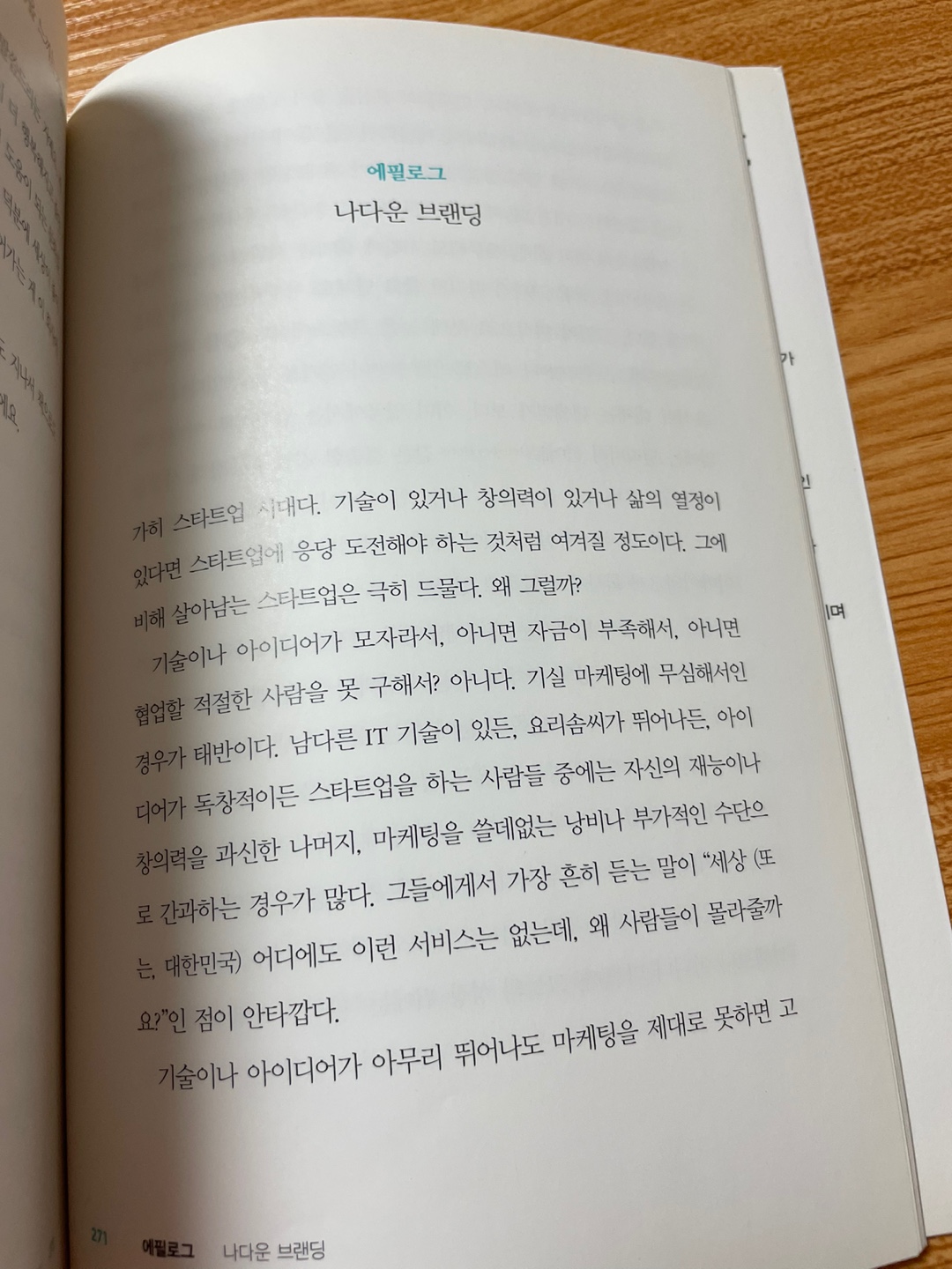 스타트업에 대해, 또 마케팅과 브랜딩에 대해 자세하고 편안하게 설명되어있다.