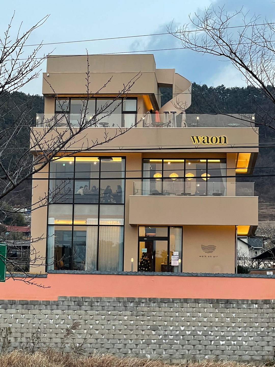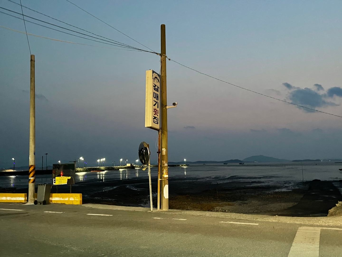와온해변에서 일몰 보기전에 시간 떼울겸 갔다. 와온해변에선 한 5분거리 정도다. 지금까지 갔던 곳은 비수기라 그런지 전부 사람이 별로 없었는데 여기는 사람이 꽤나 있어서 신기했다. 이 카페는 비좁은 3층짜리 카페라 자리가 많지는 않게 느껴졌다. 2,3 층에선 와온해변의 갯벌뷰를 즐길 수 있다.