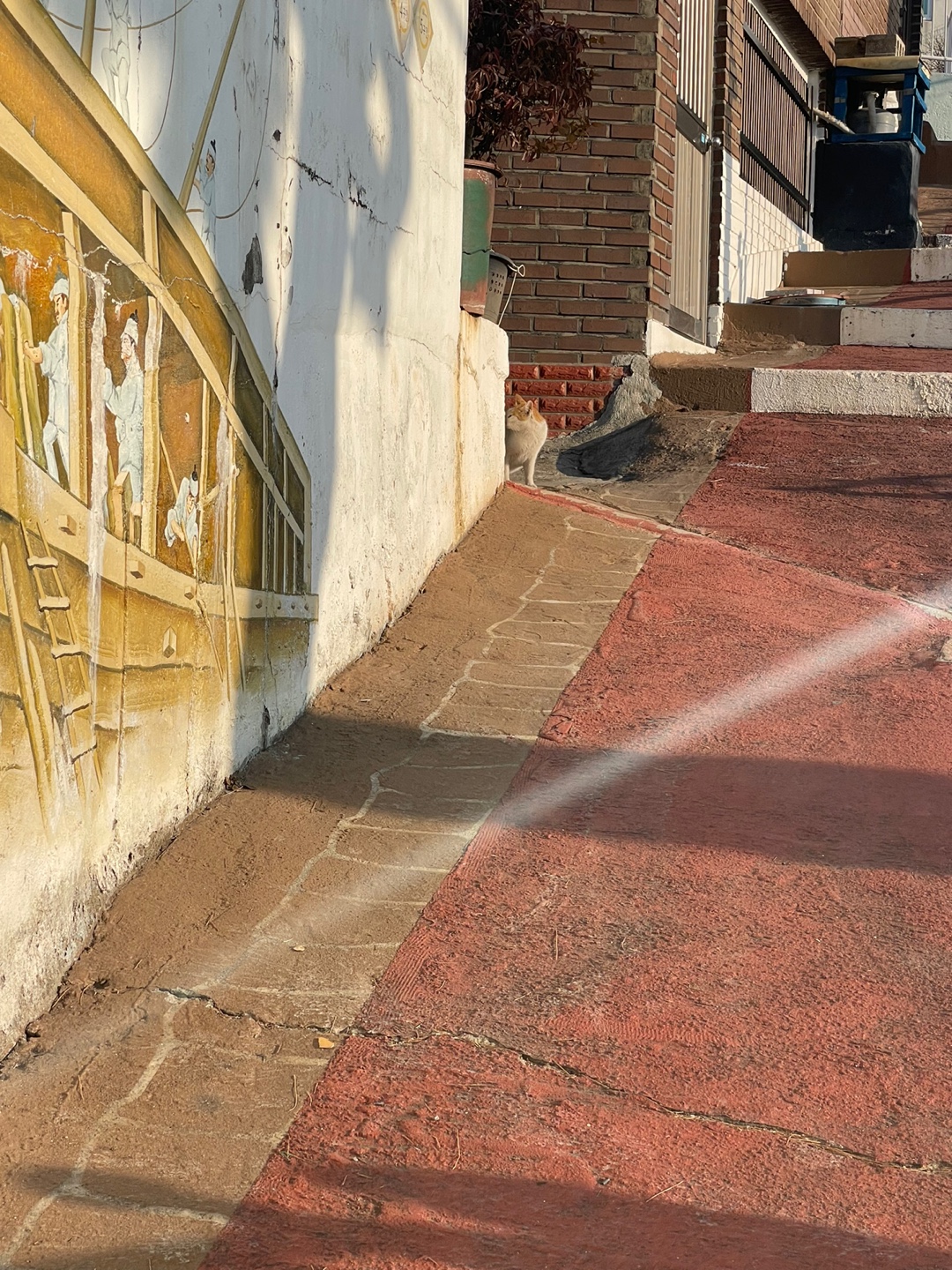벽화에 고양이가 꽤나 많았는데 진짜 벽화에 있는 고양이랑 똑같이 생긴 고양이가 바로 옆에 있어서 깜짝 놀랐다!