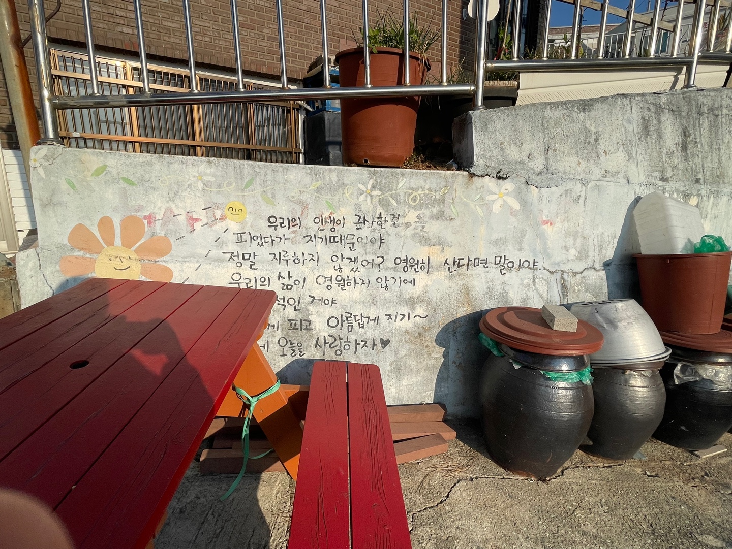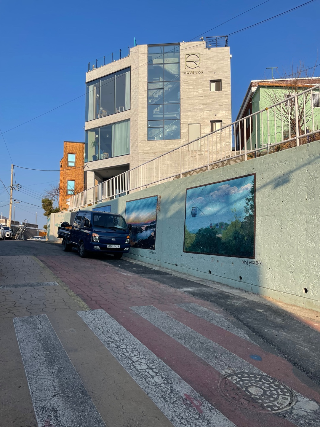 숙소 바로 옆에 있어서 아침 8시부터 벽화마을에 향했다. 여기 주변에 이쁜 카페와 식당들도 많았는데 대부분 10시부터라서 가진 못했다. 한시간 반정도 구경했다. 벽화마을에서 아침 바다를 보니 또 새로웠다. 바다는 언제 봐도 색다르게 느껴지는 매력이 있다.