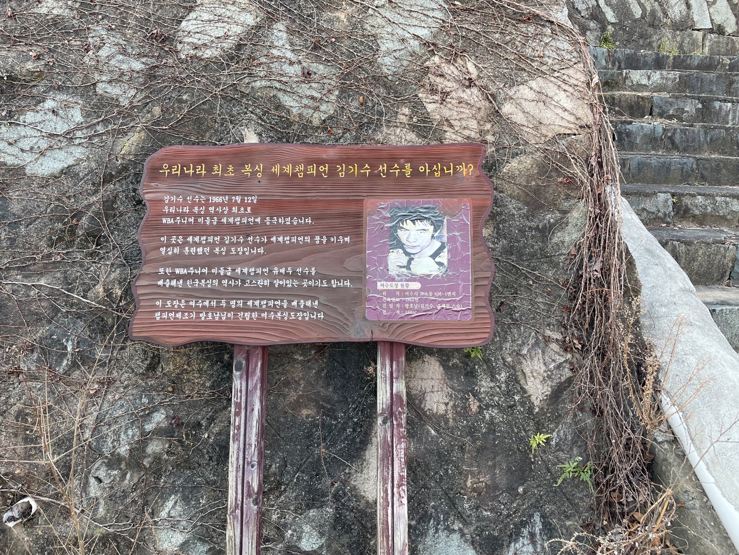 벽화마을 걸어다니다가 보이길래 가봤다. 그냥 설명 읽어보면서 고소대에선 '아 이런걸 기념했구나~ ', 김기수 선수 기념하는 곳에서는 '우리나라에 이런 사람도 있었구나~' 하며 넘겼다.