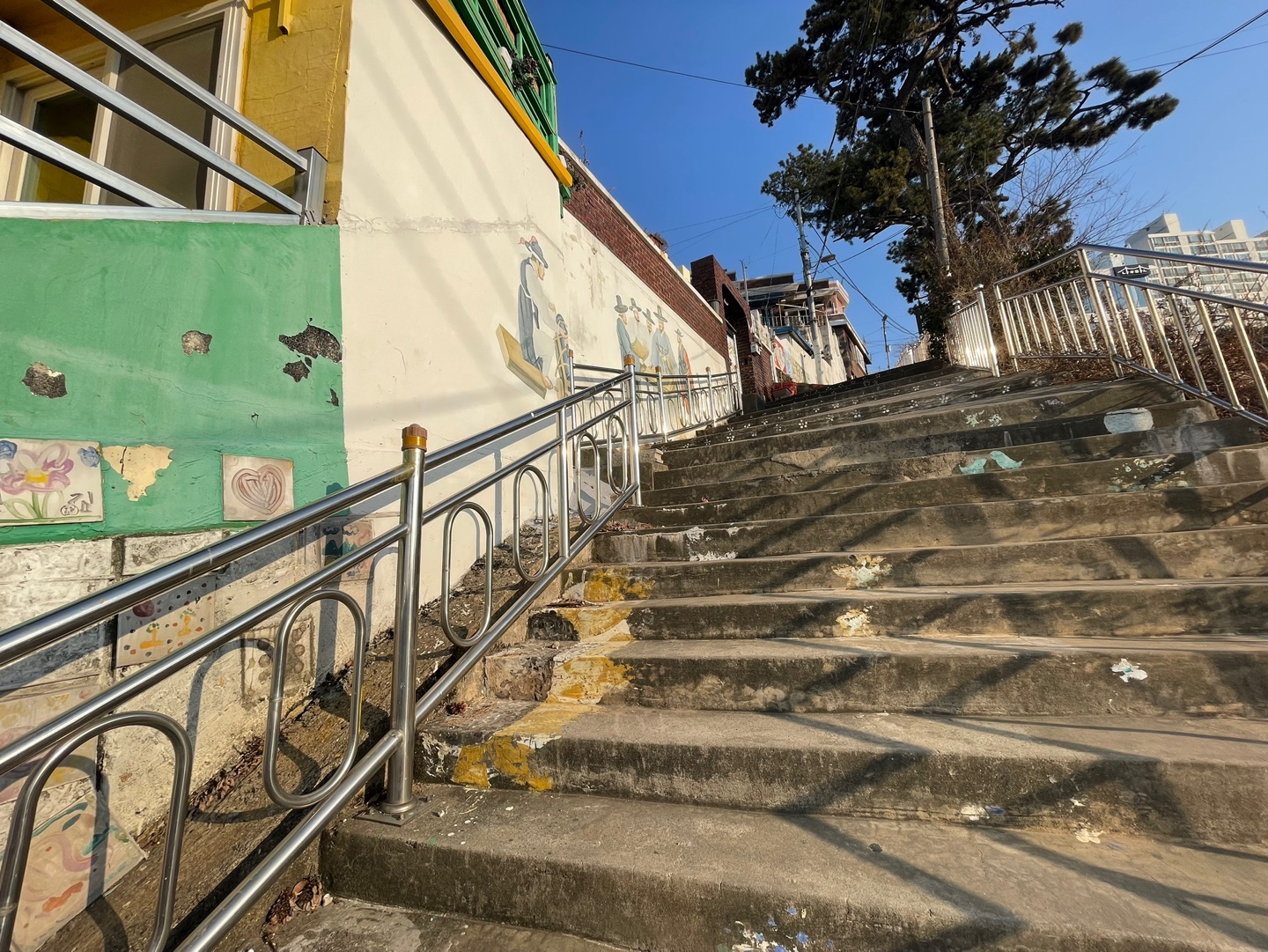 이 계단에서 사진찍다가 실수로 에어팟 잃어버렸었다... 길도 복잡해서 여기까지 다시 찾아오느라 꽤나 힘들었지만 다행히 이른시간이라 다니는 사람이 없었던 덕인지 다시 찾을 수 있었다. 에어팟 가격이 총 여수 여행경비정도인데 진짜 슬플 뻔했다!