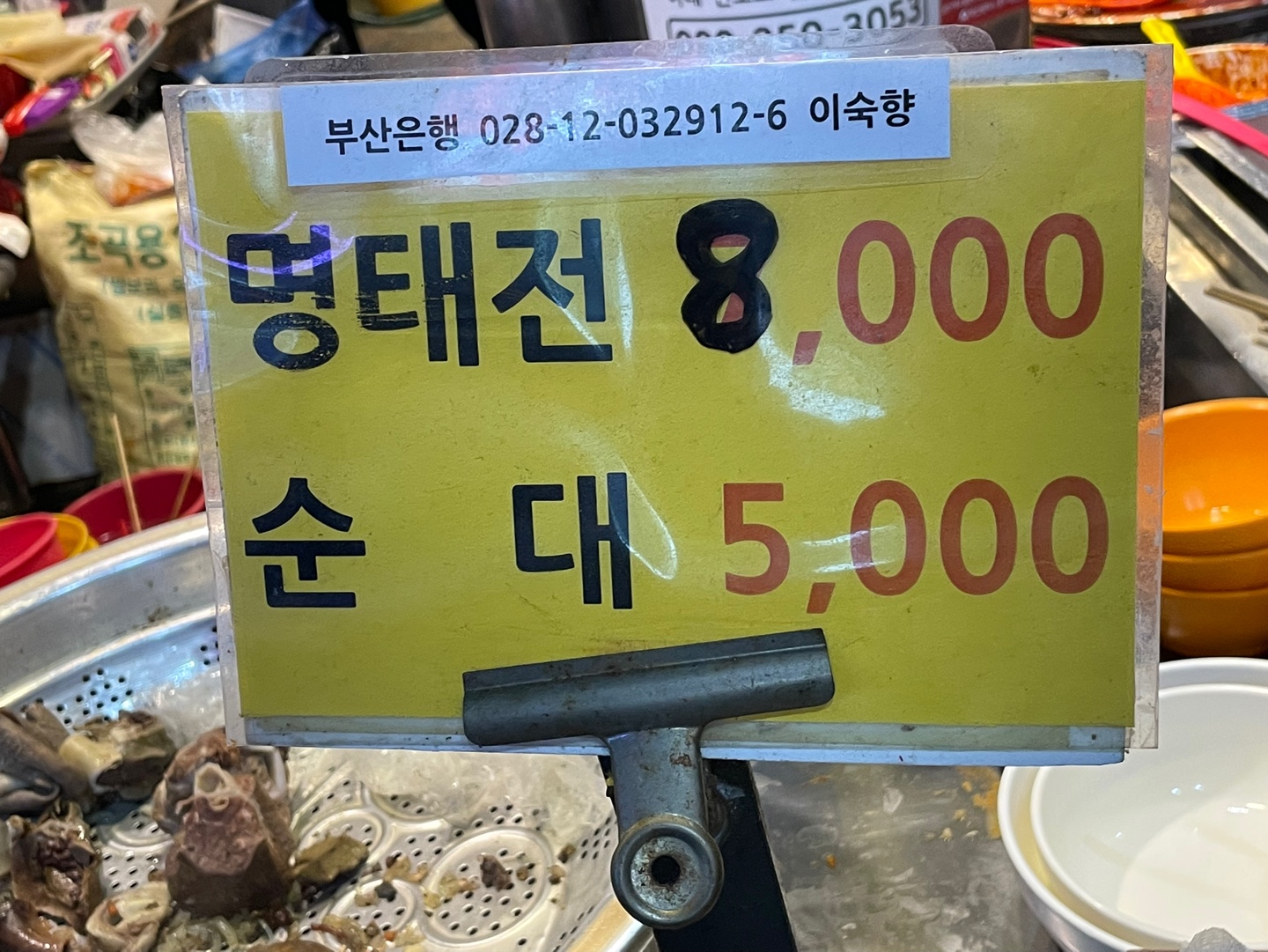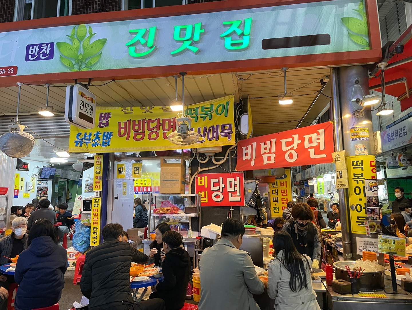 깡통시장 입구 쪽이기도 했고 유독 여기에 사람이 만길래 비빔당면이랑 순대 포장해왔다.