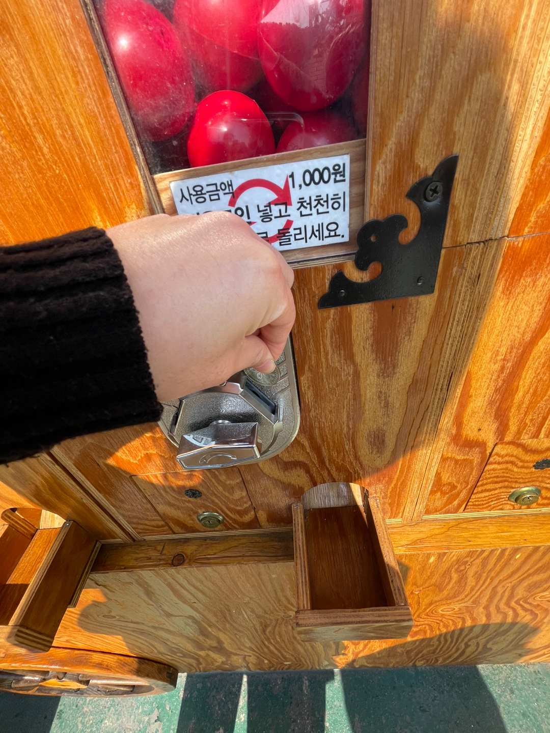 먼저 1,000원을 코인으로 교환한뒤, 코인을 넣고 돌려 빨간색 운세 공을 뽑으면 된다.