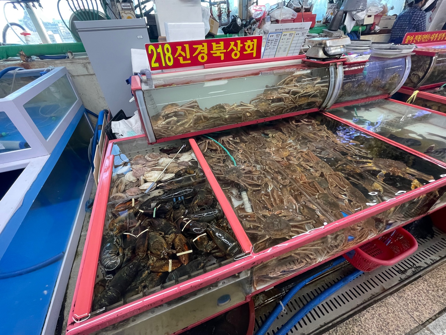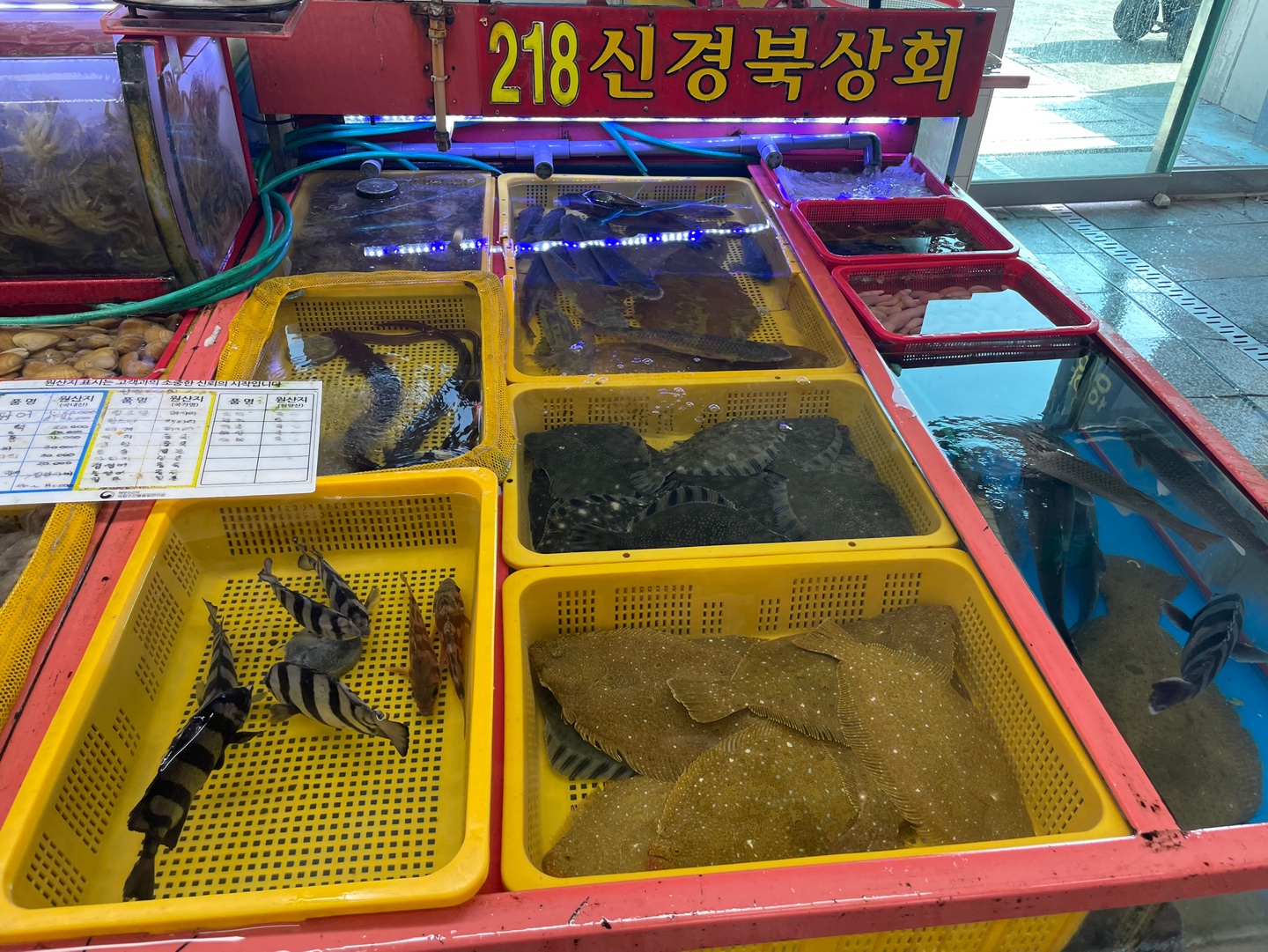 1층 218번 신경북상회에서 이것저것 시킨뒤, 알려주신 서울 21번 서울 횟집에 가서 먹었다.