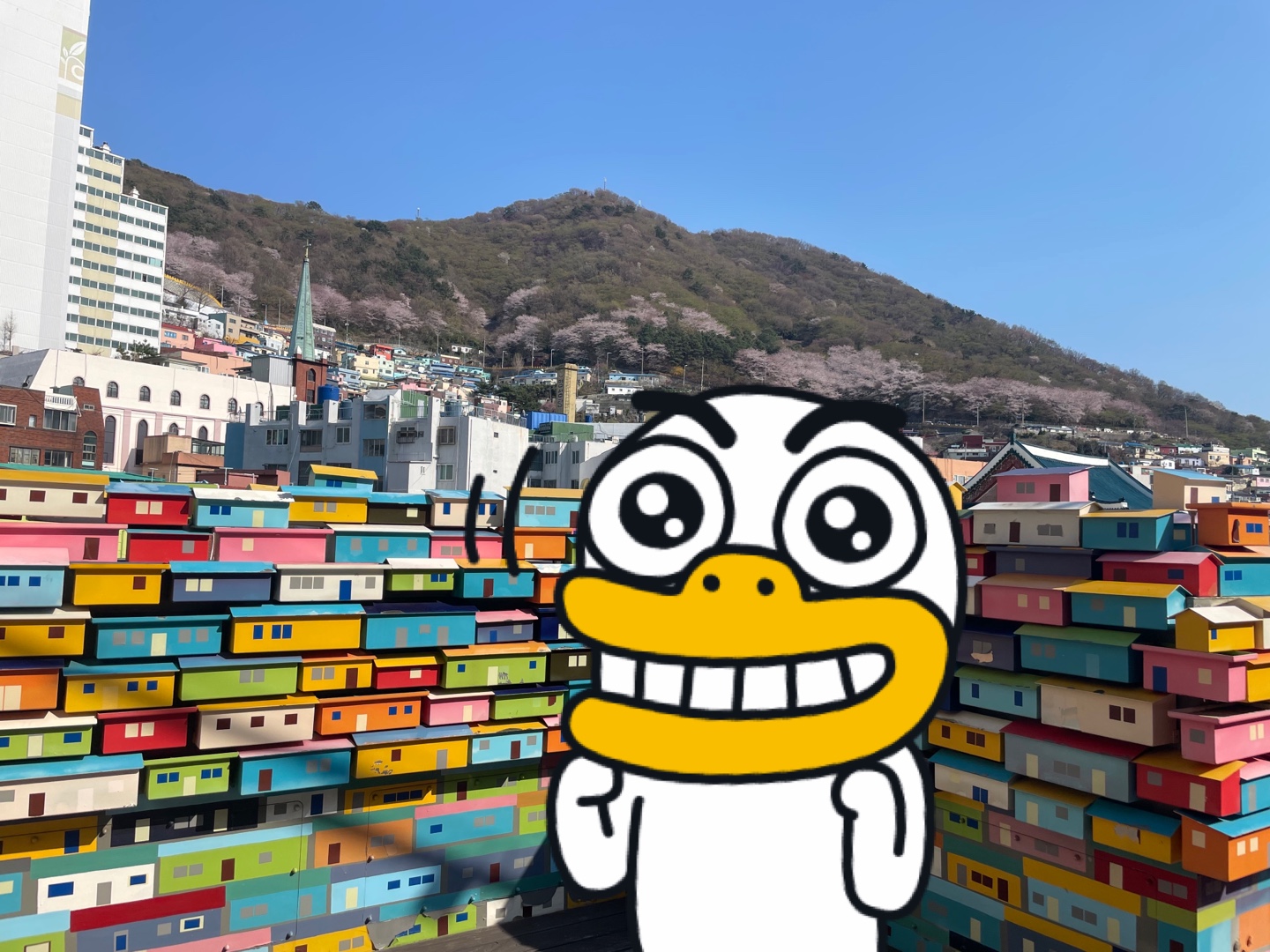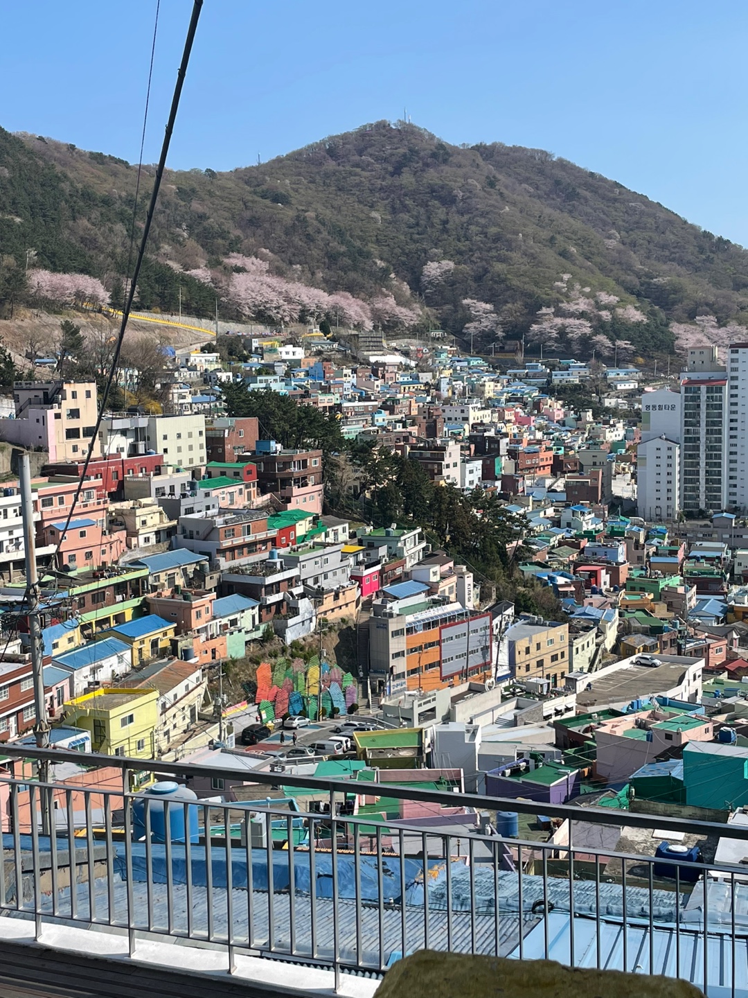 계단식으로 알록달록하게 집들이 놓여있으니 아주 예쁘다! 옆에 벚꽃까지 완-벽
