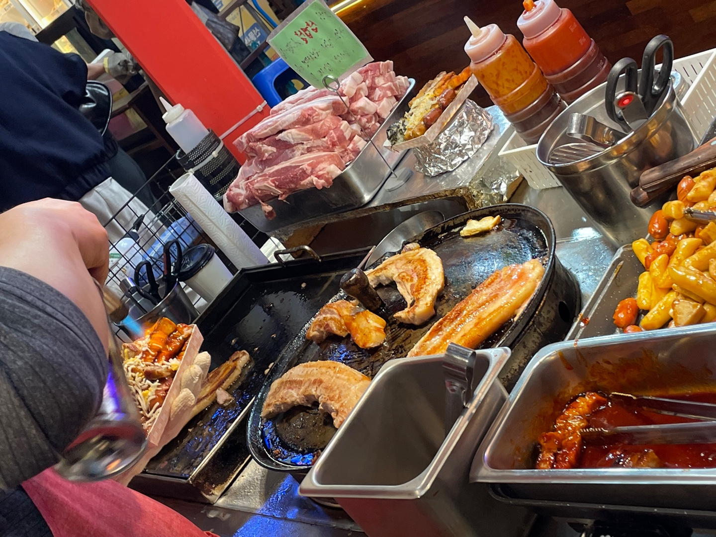 회먹었더니 고기가 당겨서 여기서 삼겹살 사먹었는데 맛있었다