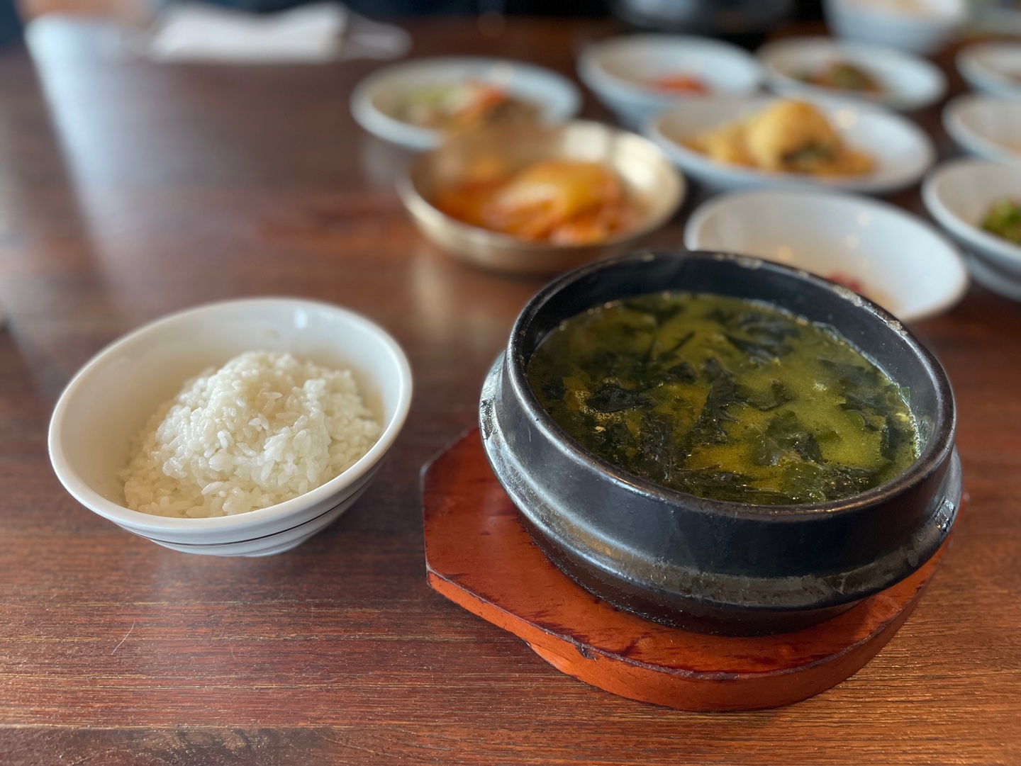 다른 두 가족은 쇠고기 미역국을 시키고 나는 안먹어본 미역국을 맛보고 싶어서 조개 미역국을 시켰다.