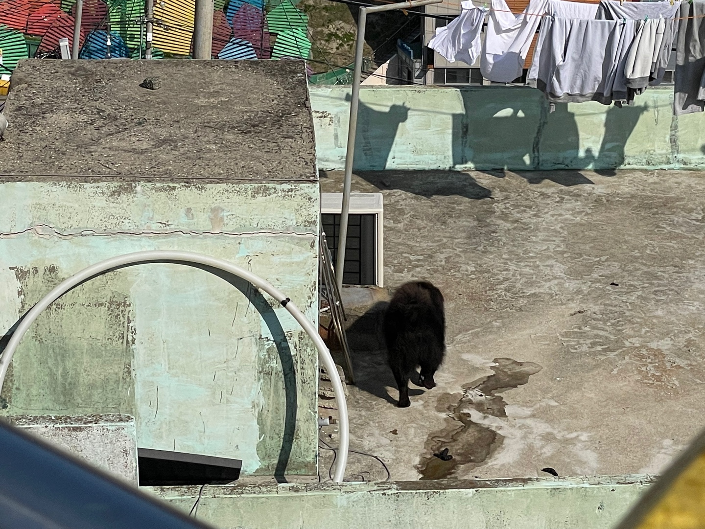 내려가는 길에 흑곰 비쥬얼의 거대하고 귀여운 강아지가 있길래 사진찍었다.